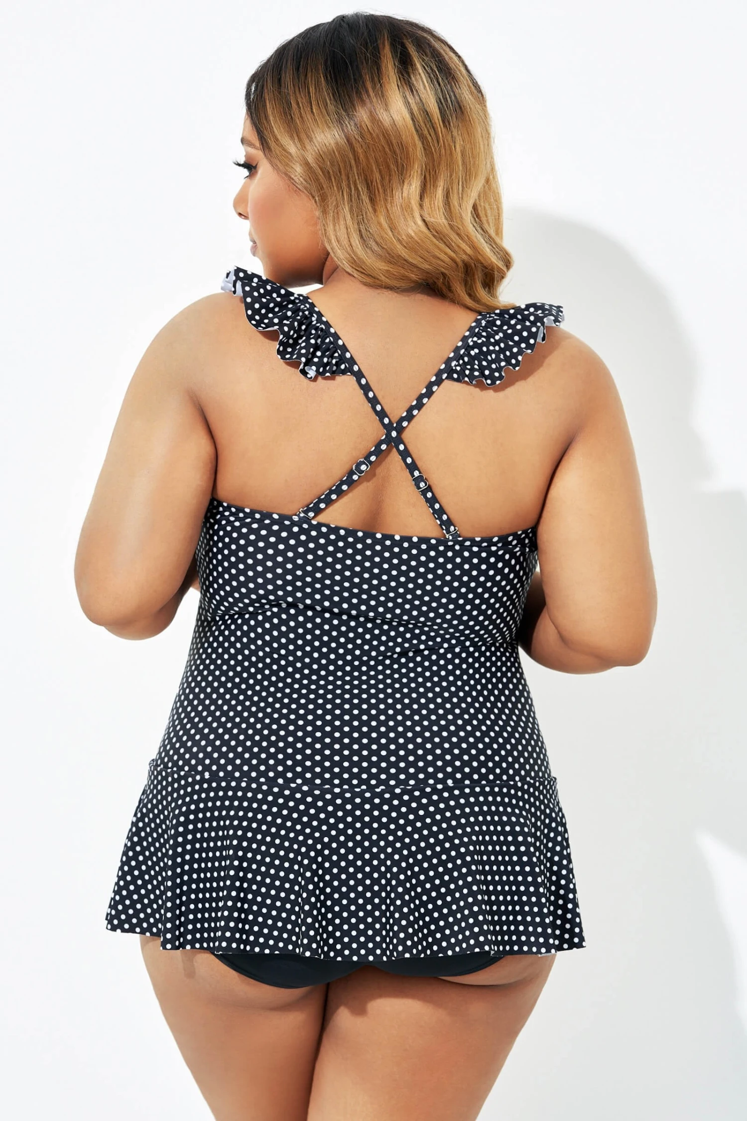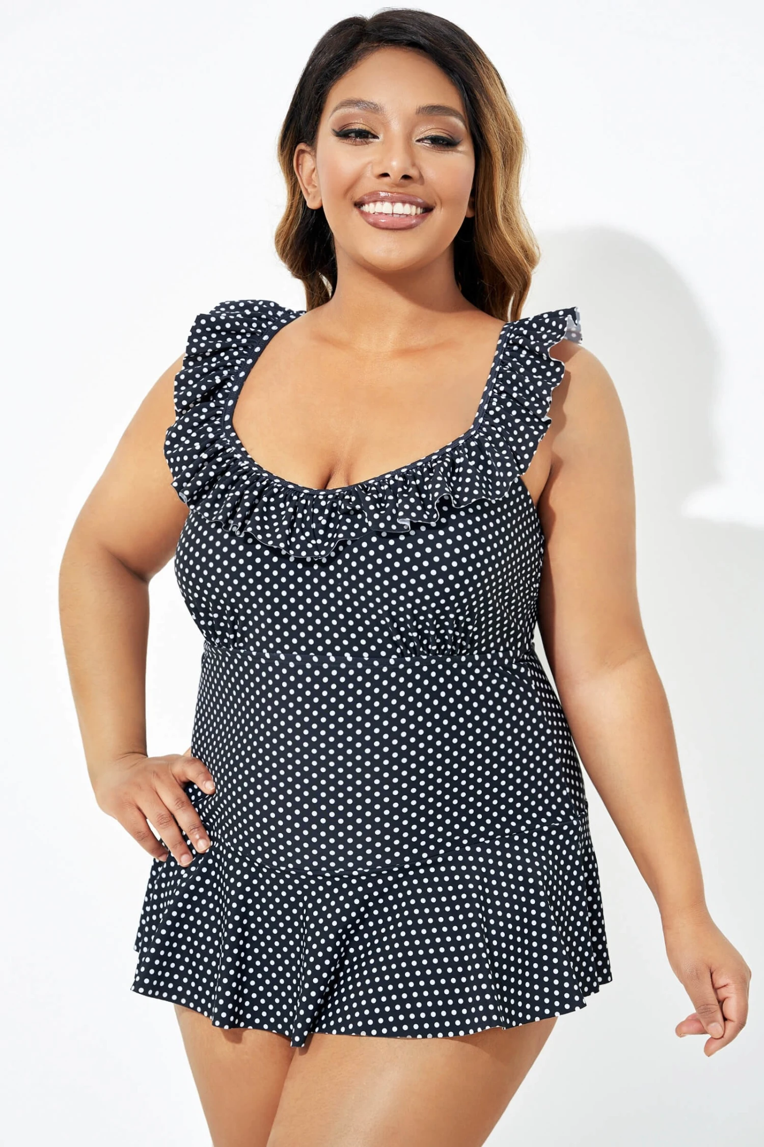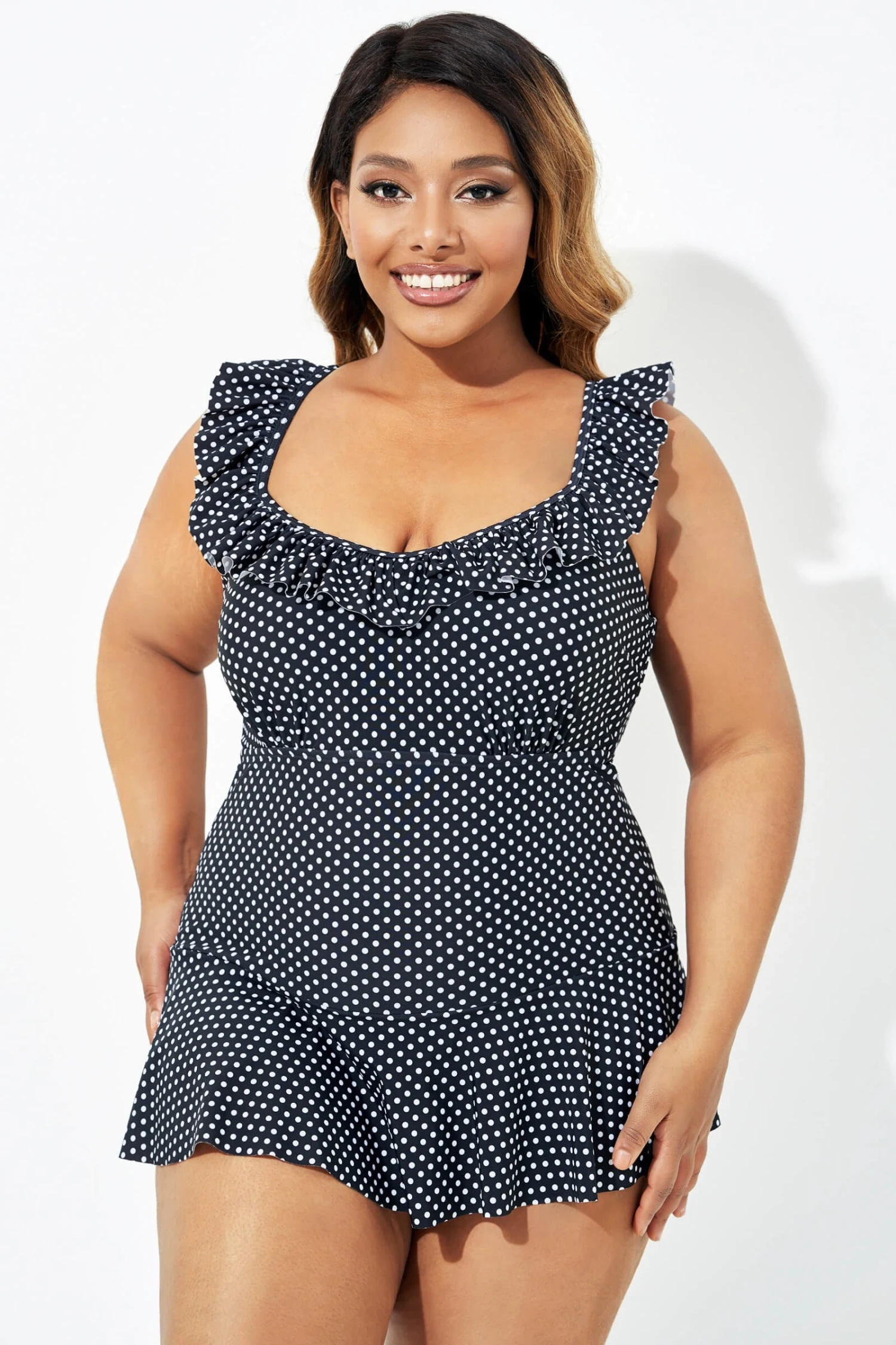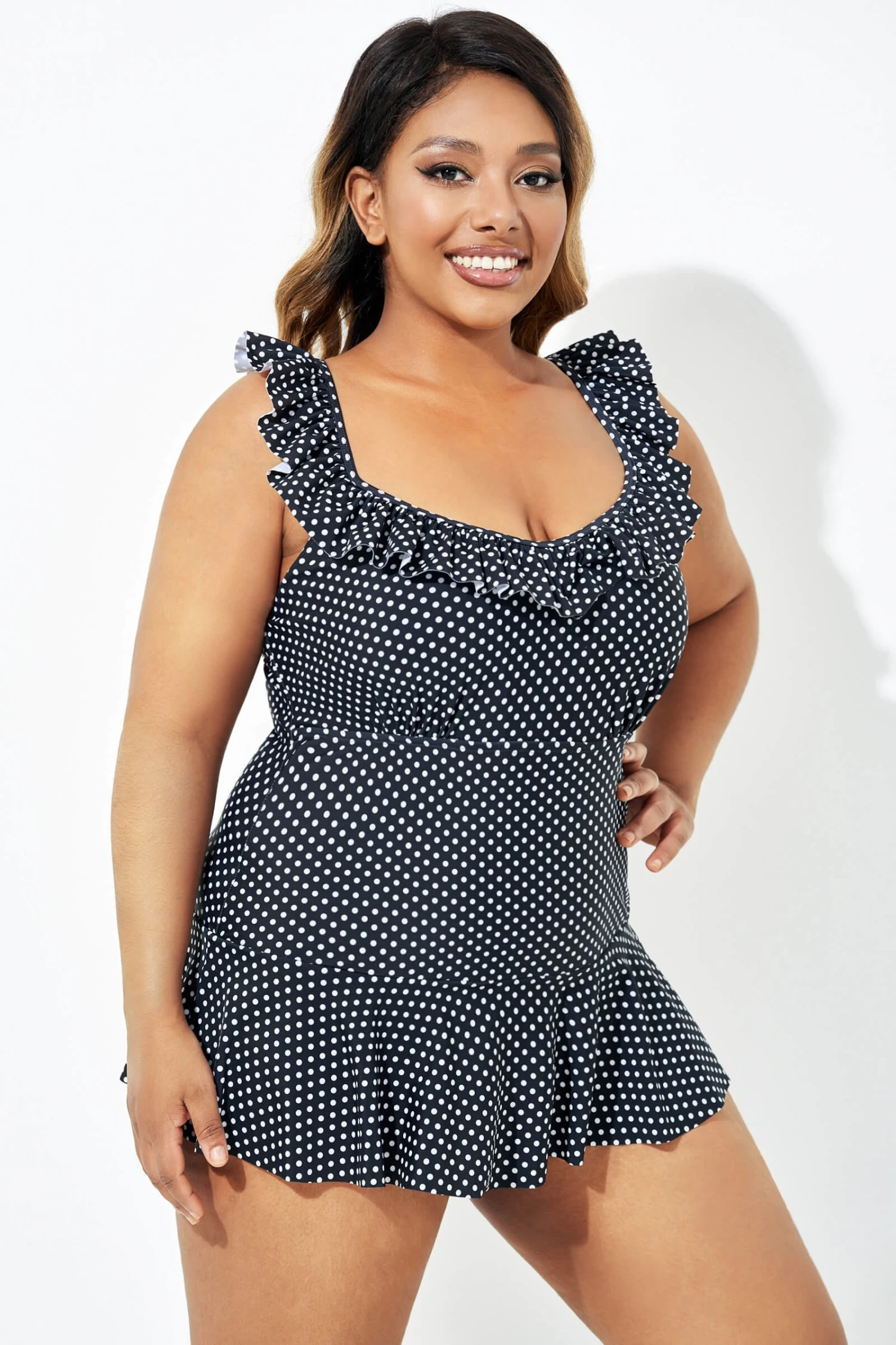 Black Polka Dot Ruffles Elegant One Piece Swimsuit