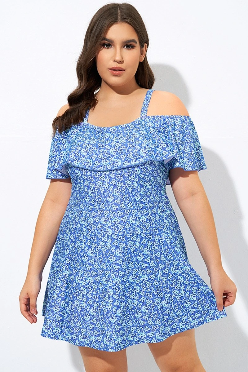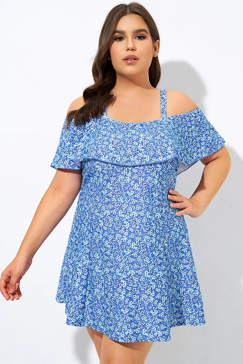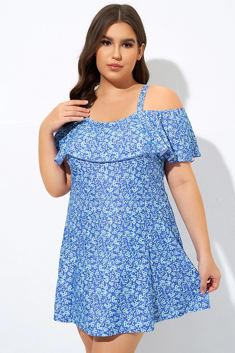 Pretty Ditsy Prints Off-the-Shoulder Swimdress
