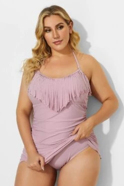 Square Collar Tie Dye Underwire Adjustable Straps Tankini Top
